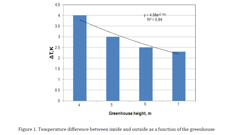 Indonesia berada di iklim tropis yang memiliki karakter suhu panas pada saat musim kemarau, apalagi tantangan perubahan iklim saat ini menjadikan suhu udara semakin meningkat. Untuk menjawab tantang tersebut, Greenhouse sebaiknya di bangun dengan fungsi mendinginkan suhu di dalam Greenhouse, namun ini tentunya memerlukan teknologi pendinginan dan energy yang lebih banyak. Hal ini belum di imbangi dengan harga komoditas pertanian yang sebanding dengan penggunaan energy untuk mendinginkan Greenhouse. Untuk itu menurut kami Greenhouse dibangun untuk menjawab tantangan itu paling tidak suhu di dalam GH dan diluar GH tidak terpaut jauh. Beberapa literasi menuliskan bahwa tinggi greenhouse berpengaruh terhadap suhu yang ada di dalam Greenhouse. Kenaikan tinggi GH dapat menurunkan suhu yang ada di dalam GH karena volume udara meningkat sebanding dengan kenaikan tinggi GH. Namun ada sebuah penelitian yang menuliskan bahwa antara tinggi 4 meter dan 6 meter memiliki selisih yang signifikan, namun antara 7 dengan 6 meter tidak terlalu signifikan untuk menurunkan suhu di dalam GH. Berdasarkan penelitian kami, data yang kami dapatkan dari GH kami yang berada di 17 mdpl menunjukkan bahwa selisih suhu dalam dan luar GH hanya di angka 1-2 derajat celcius. Oleh karena itu kami merekomendasikan untuk membuat GH tinggi 6 meter sampai dengan talang.